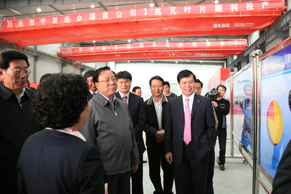 2010年5月12日,酒泉國家風電裝備高新技術產(chǎn)業(yè)化基地正式掛牌,標志著甘肅新能源基地建設進入了一個新的階段。甘肅省委書記、省人大常委會主任陸浩出席掛牌儀式并為基地揭牌,省委副書記、省長徐守盛也參加了儀式。隨后陸浩、徐守盛在中國復合材料集團有限公司董事長兼總經(jīng)理張定金的陪同下視察了中復連眾酒泉葉片基地。