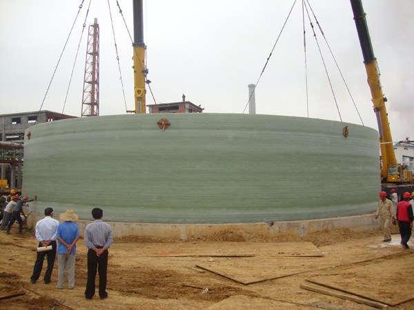 2010年3月,中復(fù)連眾成功競標(biāo)湖北宜昌2臺5000立方、1臺3000立方的玻璃鋼鹽酸貯罐項(xiàng)目。該項(xiàng)目存在罐體直徑大、罐頂易變形、罐身高、罐內(nèi)液體壓力大的難點(diǎn),并且內(nèi)部為高腐蝕性鹽酸介質(zhì),制作難度空前,在國內(nèi)甚至全球并無案例可參考。為確保該項(xiàng)目的成功實(shí)施,業(yè)主選擇處于行業(yè)領(lǐng)先地位的中復(fù)連眾來承擔(dān)此工程。中復(fù)連眾充分發(fā)揮卓越的自主創(chuàng)新能力,完成了多項(xiàng)技術(shù)攻關(guān),通過改進(jìn)纏繞設(shè)備、使用新型材料、內(nèi)部采用多點(diǎn)支撐、優(yōu)化施工工藝等方法,克服施工難點(diǎn),成功完成儲罐制作。從工程設(shè)計(jì)到工程竣工交付僅僅用了6個月時間,于2011年2月交付業(yè)主使用。