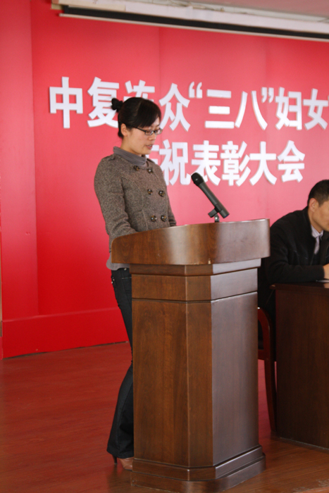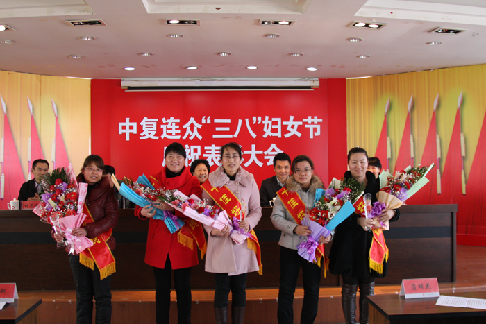 3月7日下午,五樓會(huì)議室里鮮花簇?fù)怼⒋阂馊谌?,中?fù)連眾隆重舉行“三八節(jié)”慶祝表彰大會(huì),授予二十位女職工“十佳好兒媳”、“十佳賢內(nèi)助”稱號(hào)。
