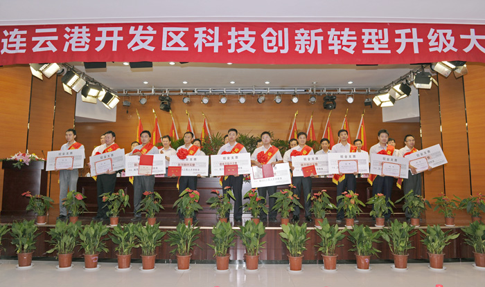 7月27日,市開發(fā)區(qū)科技創(chuàng)新轉(zhuǎn)型升級(jí)大會(huì)隆重召開,會(huì)議對(duì)2011年度開發(fā)區(qū)企業(yè)十大科技創(chuàng)新成果、優(yōu)秀科技創(chuàng)新平臺(tái)、專利擁有量十強(qiáng)企業(yè)、實(shí)施品牌戰(zhàn)略十佳企業(yè)、優(yōu)秀商標(biāo)、高層次人才進(jìn)行了表彰。中復(fù)連眾包攬了除優(yōu)秀商標(biāo)之外的其他5項(xiàng)大獎(jiǎng)。公司副總經(jīng)理劉衛(wèi)生出席會(huì)議并上臺(tái)領(lǐng)獎(jiǎng)。