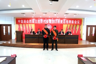 副總經(jīng)理、工會(huì)主席王彤兵作了題為《凝心聚力 服務(wù)發(fā)展 努力開創(chuàng)中復(fù)連眾工會(huì)工作新局面》的工會(huì)工作報(bào)告?;仡櫩偨Y(jié)了2015年在推進(jìn)民主管理、建設(shè)職工隊(duì)伍、弘揚(yáng)勞模精神、構(gòu)建勞動(dòng)安全保障機(jī)制、展現(xiàn)職工精神風(fēng)貌、職工幫扶體系建設(shè)等方面取得的成效,深刻剖析了存在的不足,并就2016年工會(huì)工作布置了四個(gè)方面的工作:一是進(jìn)一步組織動(dòng)員職工,在融入中心工作上下功夫;二是進(jìn)一步教育引導(dǎo)職工,在堅(jiān)定理想信念上下功夫;三是進(jìn)一步聯(lián)系服務(wù)職工,在推進(jìn)民主管理上下功夫;四是進(jìn)一步履行職責(zé),在加強(qiáng)工會(huì)自身建設(shè)上下功夫。