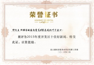 3月8日,連云港市開發(fā)區(qū)黨工委召開2016年全區(qū)黨建暨群團(tuán)工作會(huì)議,全面落實(shí)市委工作會(huì)議和全區(qū)工作總結(jié)暨動(dòng)員部署會(huì)議精神,對(duì)2015年度紀(jì)檢、組織、宣傳條線的先進(jìn)單位、亮點(diǎn)工作和先進(jìn)個(gè)人進(jìn)行表彰。中復(fù)連眾榮獲2015年度開發(fā)區(qū)新聞宣傳工作先進(jìn)單位,黨群工作部仲文玉所撰寫的《國內(nèi)首支68米長風(fēng)機(jī)葉片出口歐洲》(刊于2015年6月1日頭版主圖)被評(píng)為2015年度開發(fā)區(qū)十佳好新聞。