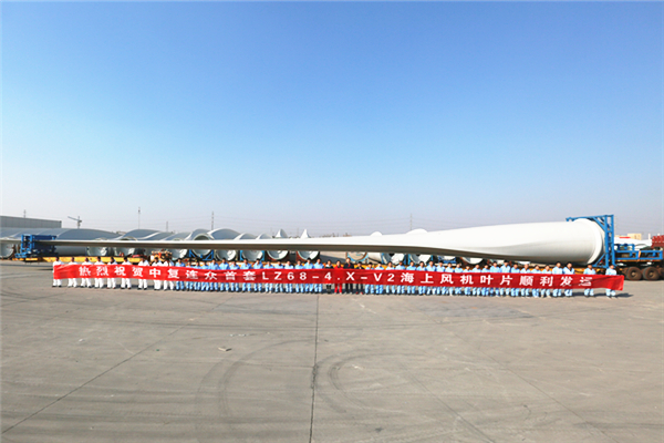 2017年12月24日,由中復(fù)連眾自主研發(fā)制造的LZ68-4.X-V2首套海上風(fēng)機(jī)葉片,從連云港港口順利發(fā)運(yùn)至江蘇龍?jiān)词Y家沙海上風(fēng)場(chǎng)。