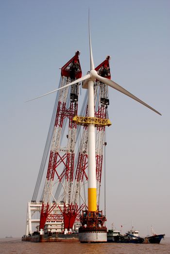 2010年2月27日15時28分,隨著最后一臺風(fēng)機(jī)與海上基礎(chǔ)承臺對接,我國首座、也是亞洲首座大型海上風(fēng)電場東海大橋海上風(fēng)電場全部34臺風(fēng)機(jī)安裝取得圓滿成功。這標(biāo)志著我國海上風(fēng)力發(fā)電產(chǎn)業(yè)穩(wěn)穩(wěn)邁出了第一步并進(jìn)入了實戰(zhàn)階段。連云港中復(fù)連眾復(fù)合材料集團(tuán)有限公司為東海大橋海上風(fēng)電項目提供了共26套3MW海上風(fēng)電葉片,占到此海上風(fēng)場的近八成份額,將為上海世博會貢獻(xiàn)源源不斷的清潔能源電力。